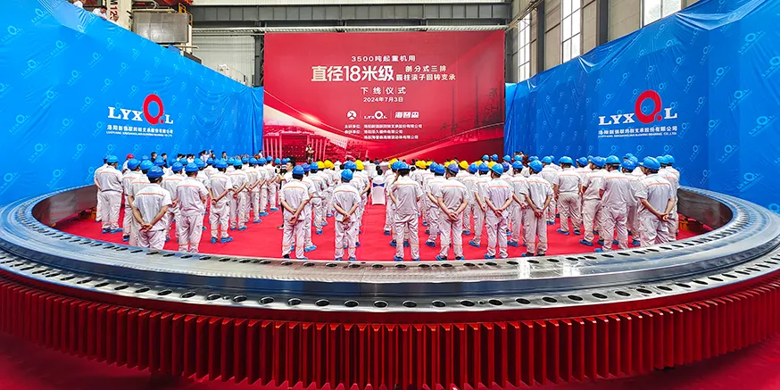 2024年7月3日,中国首台直径18米超大型剖分式回转支承生产制作完成,重量达到了168吨,竖起来相当于6层楼高。这台轴承是我国企业自主设计、制造的最大直径剖分式转盘轴承,将配套到巨型起重船上,用于大兆瓦海上风电吊装。