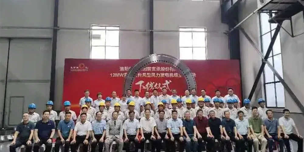 2022年7月28日,12兆瓦海上抗台风型风力发电机组主轴轴承,直径3.5米,重量超过14吨,可承受47500KNM的倾覆力矩。在研制过程中,新强联针对海上恶劣的工况,还通过对中频淬火无软带工工艺攻关、通过对感应器改进,使滚道淬硬层深度超过10毫米,满足了高承载能力的要求。