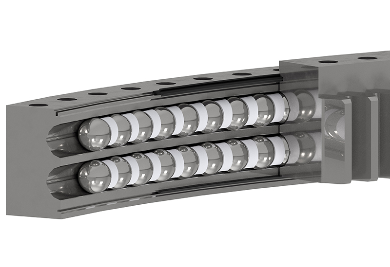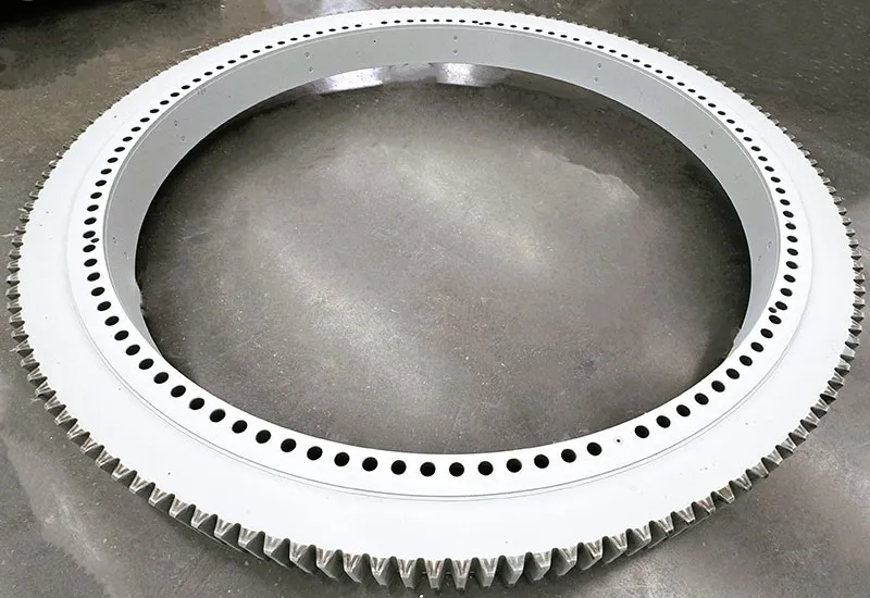 偏航轴承是安装于风力发电机组机舱底座总成的偏航机构,承载着风力发电机主传动系统的全部质量。偏航轴承必须承受巨大的静态和动态负荷,包括风力作用下的倾覆力矩、自身重量以及恶劣环境下的外部冲击。总之,偏航轴承是确保风力发电机组高效、稳定运行的重要组成部分,它的性能直接影响着风电机组的整体效能和使用寿命。