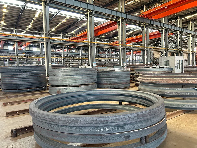 锻件加工范围Φ50~Φ12000㎜,年生产能力30万吨以上,主要生产单件重量80吨以下的各种锻件(船用环锻件、风电塔筒法兰、炉窑用法兰锻件、轮毂锻件、轮缘锻件、摩擦盘锻件、偏航齿圈锻件、挖掘机用回转支撑锻件),广泛应用于风电、航空、船舶、工程机械等行业。