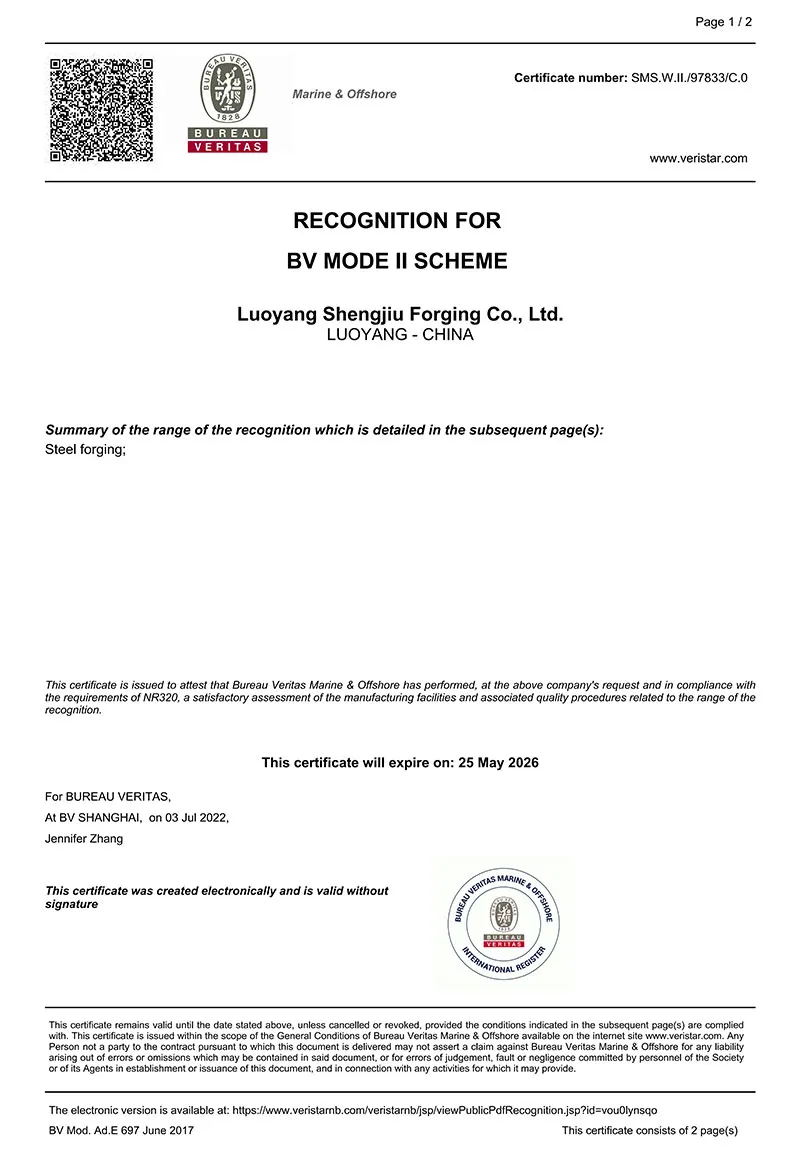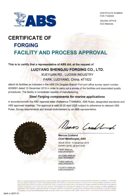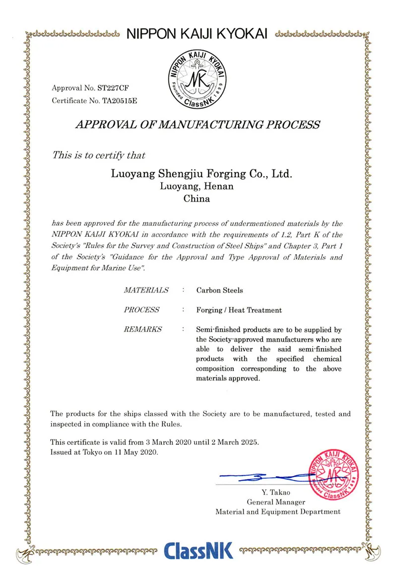 公司先后通过ISO9001、ISO14001、ISO45001三个国际体系认证证书,并获得美国ABS、法国BV、中国CCS、英国LR、日本NK、挪威DNV、韩国KR七家船级社工厂认可证书。